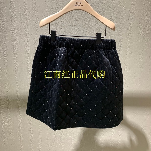 小 moco童装24冬装新款女童丝绒菱形夹棉半身短裙KBD4SKT004