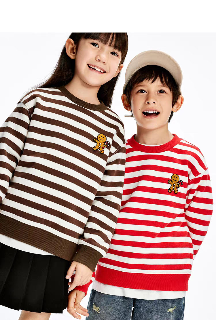 little moco童装24冬装新款男女童条纹圆领加绒卫衣KBD4SWST02