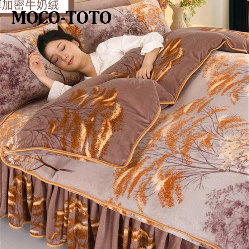 MOCO-TOTO新款加厚牛奶绒四件套冬季加绒双面珊瑚绒被套床上用品