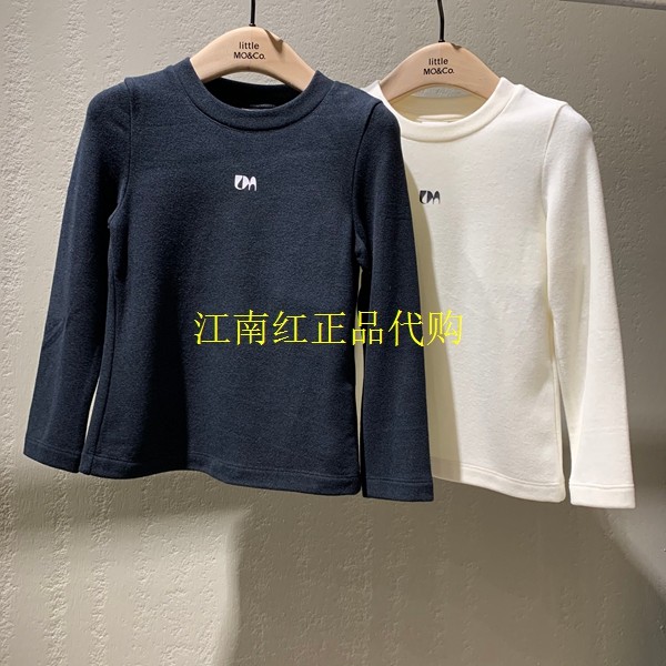little moco童装24冬装新款女童磨毛修身正肩圆领长袖KBD4TEE004