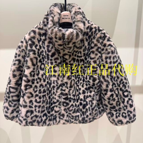 little moco 26春装新款男女童仿兔毛豹纹外套棉袄年服KBF1COT009
