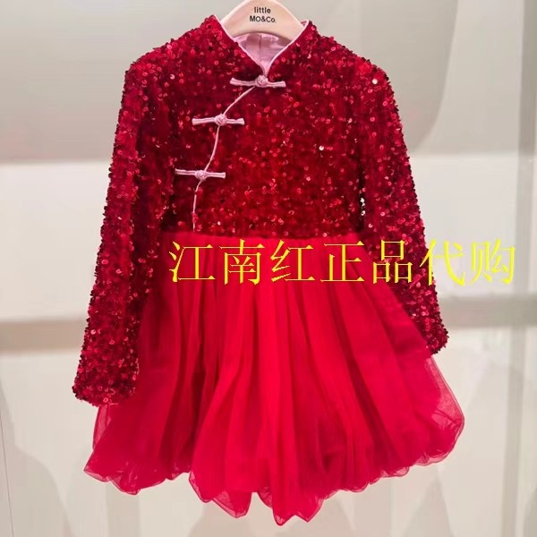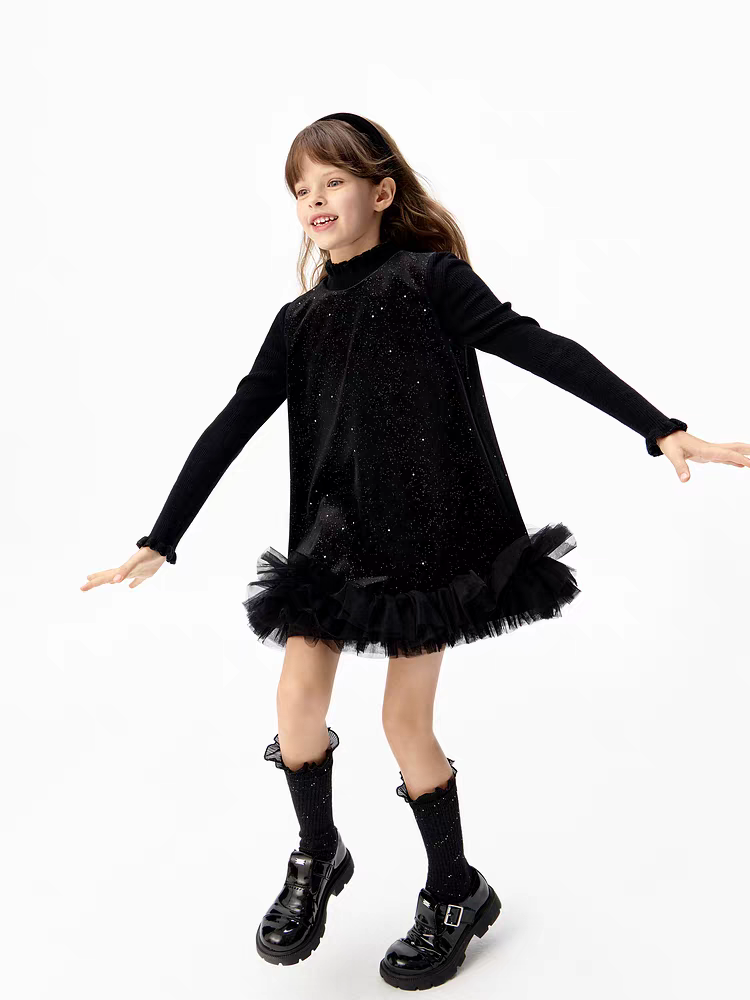 little moco童装26春新款女童珠片绣长袖网纱蓬蓬裙KBF1DRS010