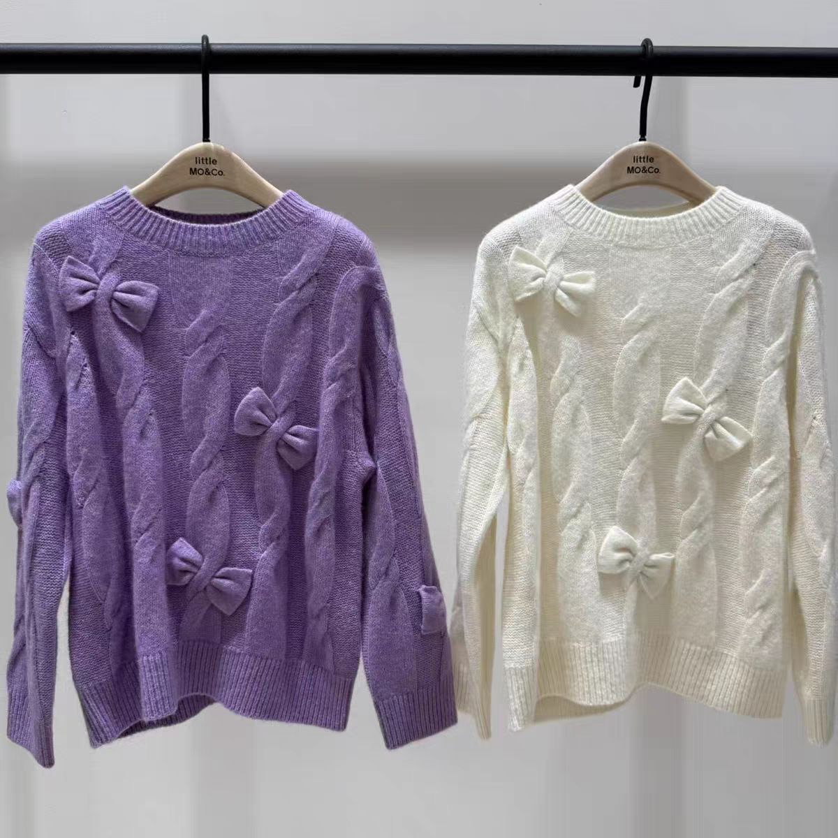 little moco专柜正品童装25冬新款女童蝴蝶结毛衣长袖KBE4SWT004