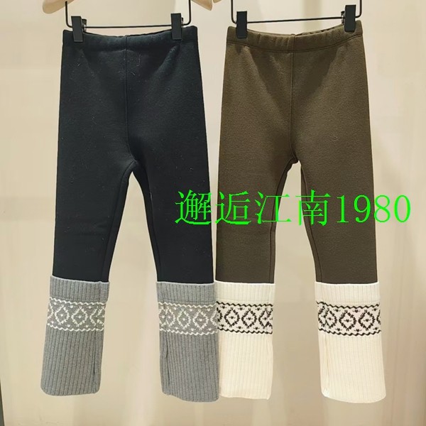 little moco童装2025冬季新款女童弹力拼接加绒打底裤 KBE4PAT010