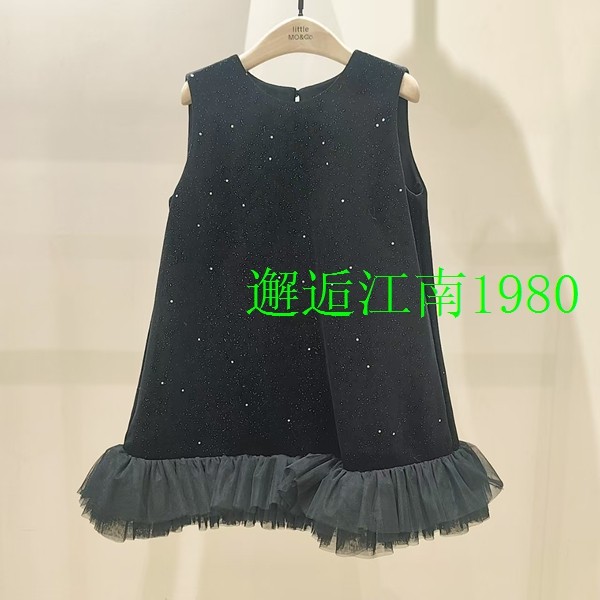 little moco专柜正品童装25冬新款女童亮片无袖连衣裙KBE4DRS005