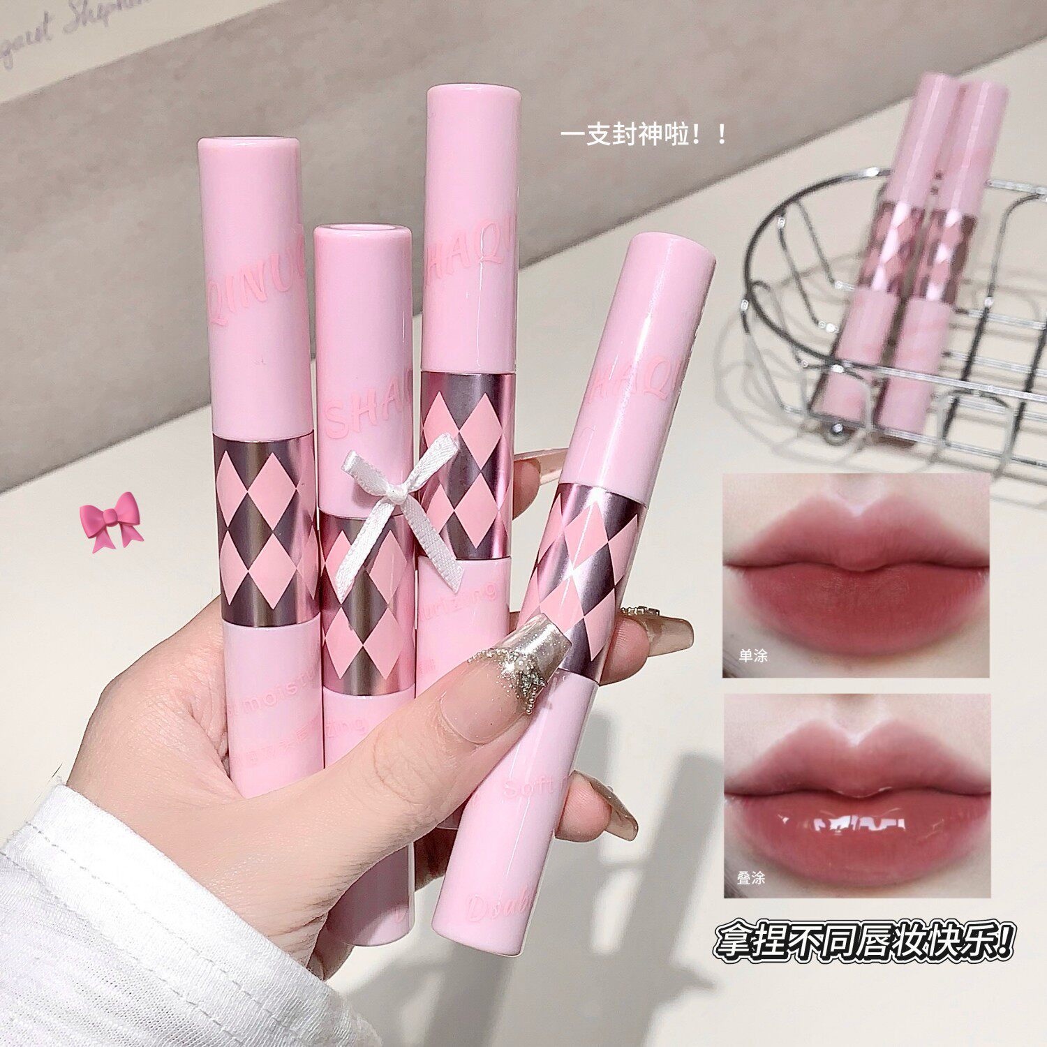 SHAQINUO柔雾水润双头唇釉轻薄雾面哑光水光玻璃唇叠涂口红 正品