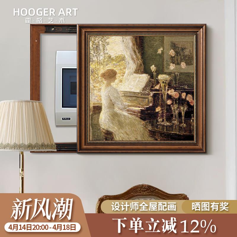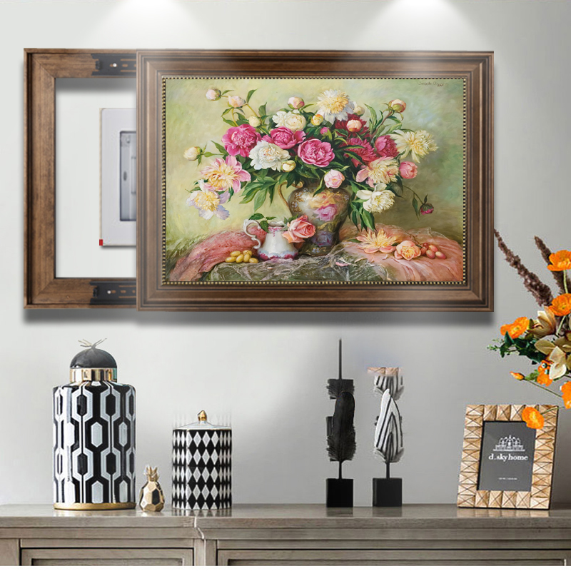 法式复古电表箱装饰画欧式遮挡配电箱电源盒推拉挂画美式餐厅壁画