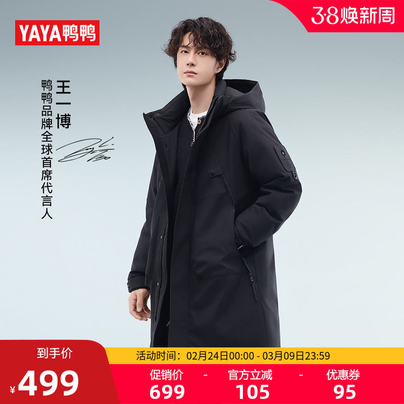 【王一博同款】鸭鸭羽绒服男女2025年冬季新品中长款连帽百搭外套