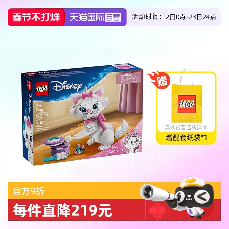 【自营】乐高积木迪士尼43286猫儿迷人玛丽拼装玩具儿童生日礼物