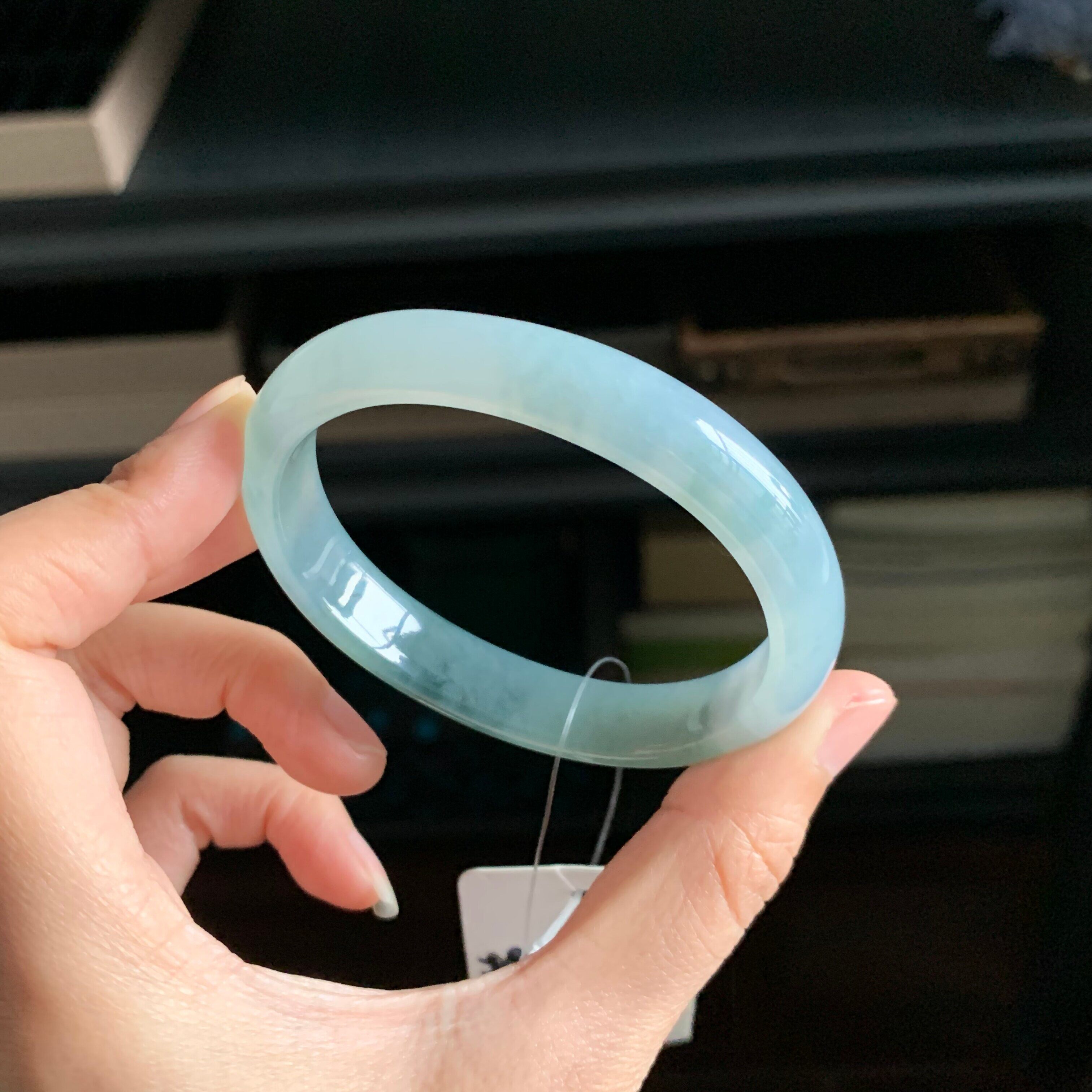 52mm 飘雪花玉石扁条玉镯子 天然A货冰种蓝水翡翠贵妃手镯女 配证