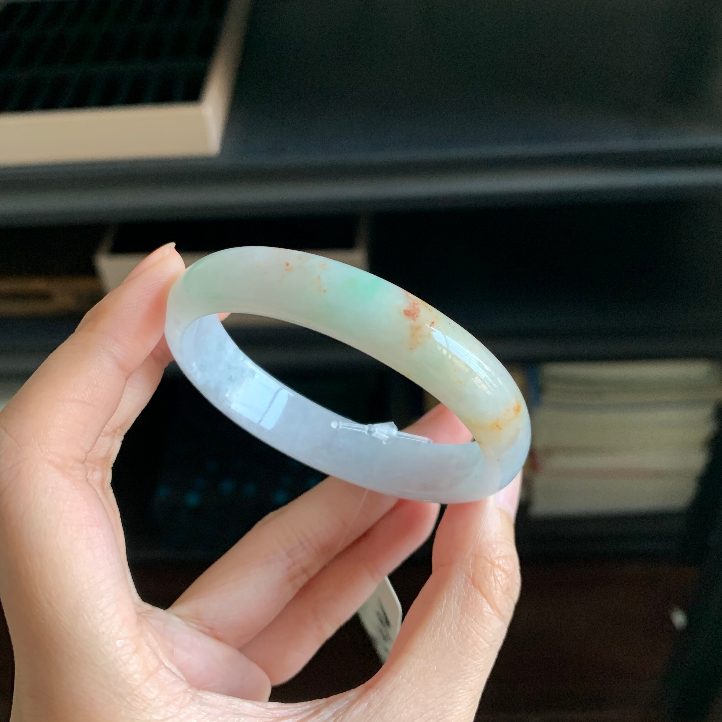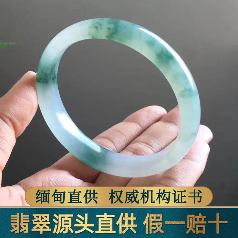 仟喜梵【缅甸直发】高端翡翠玉手镯子女款冰种飘花贵妃正品玉处理