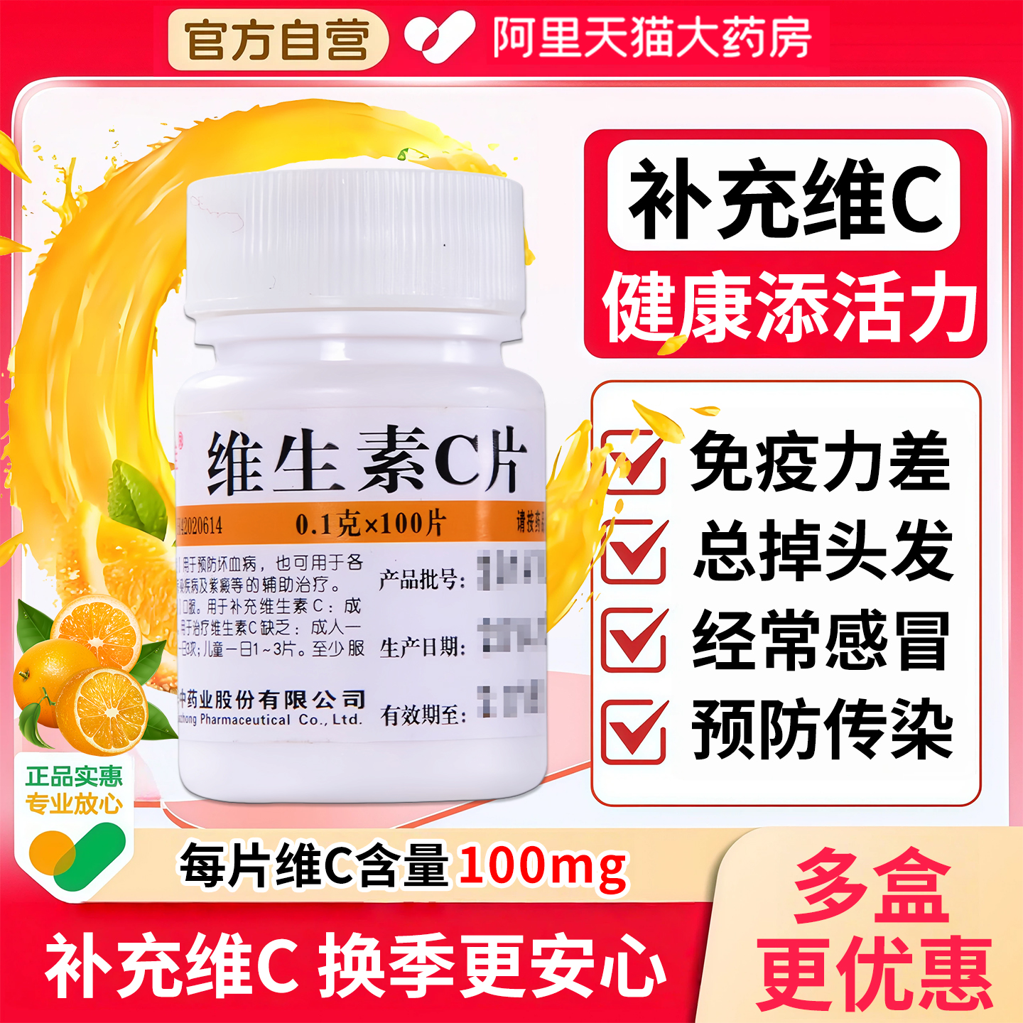 维生素C片正品100片成人儿童补充vc片维C片预防坏血病旗舰店