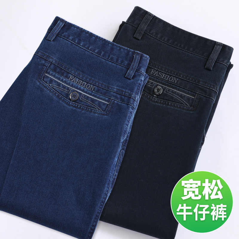 啄木鸟牛仔裤男士纯棉宽松直筒商务男裤中年爸爸休闲弹力高腰裤子
