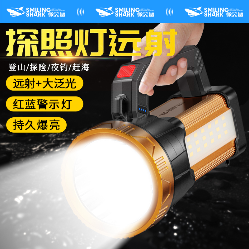 速森强光手电远程探照灯手提灯 家用户外可充电LED大手电筒超亮