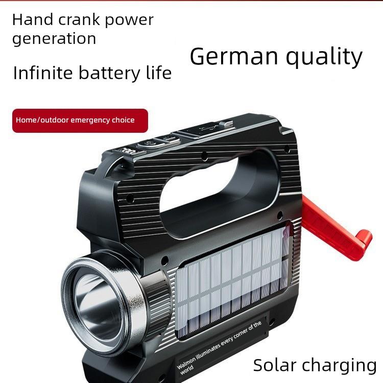 德国精工探照灯强光手电筒户外远程应急便携式照明可以手摇太阳能
