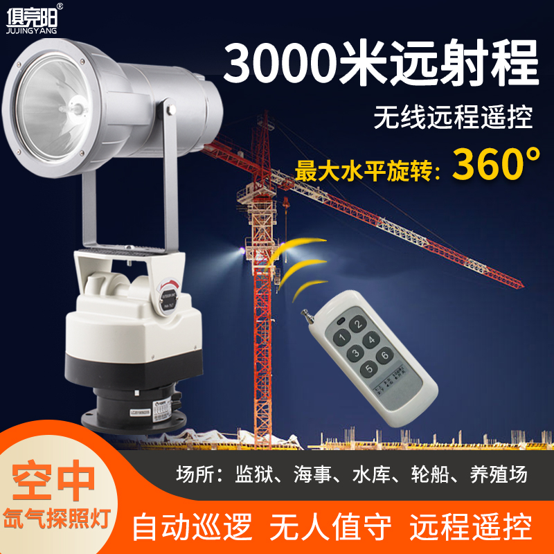 自动旋转探照灯远程强光灯养殖场水库果园监狱聚光220V船用氙气灯