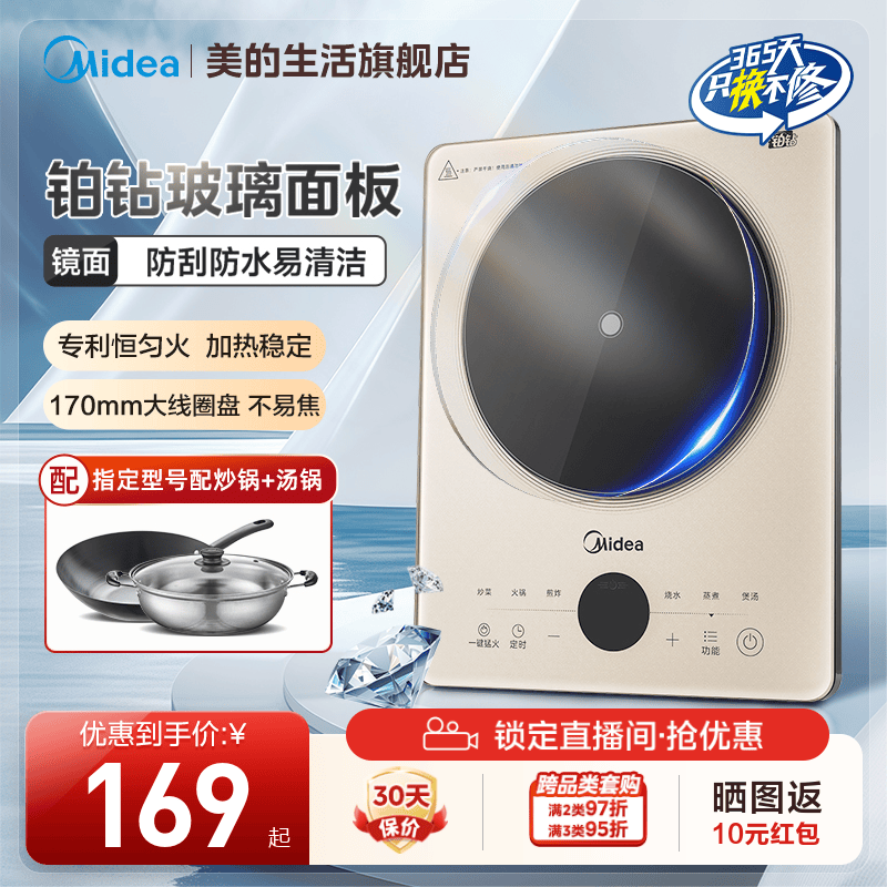 美的铂钻电磁炉大火力爆炒家用款火锅专用炒菜锅一体全套官方正品