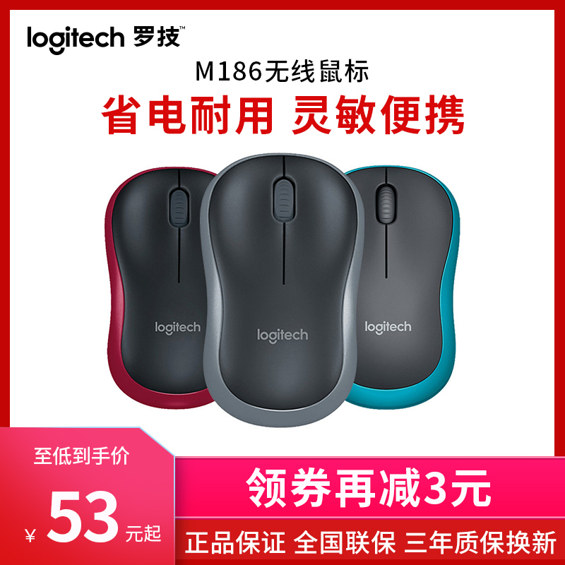 罗技M186无线鼠标笔记本电脑便携办公家滑鼠男女生M187P升级版