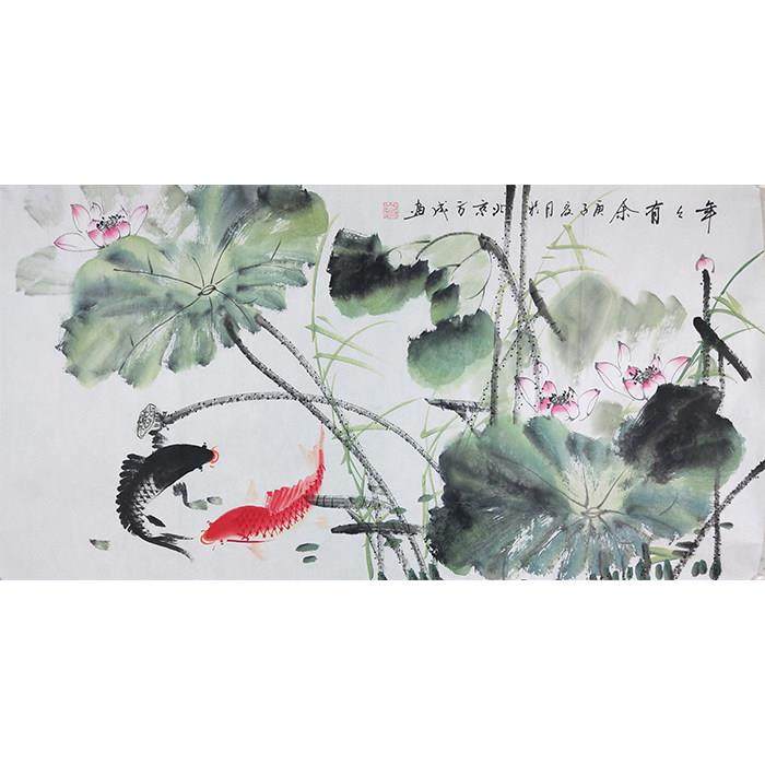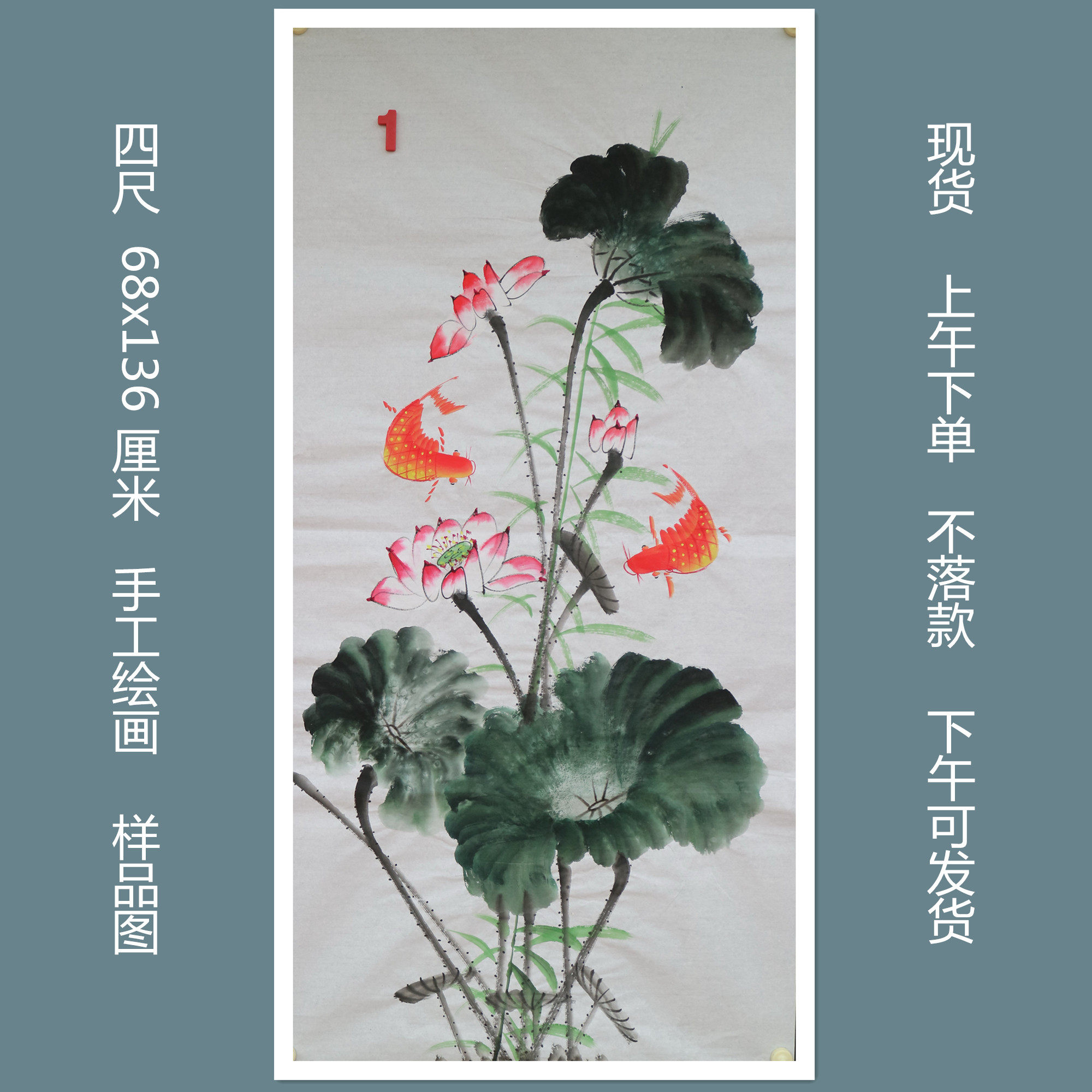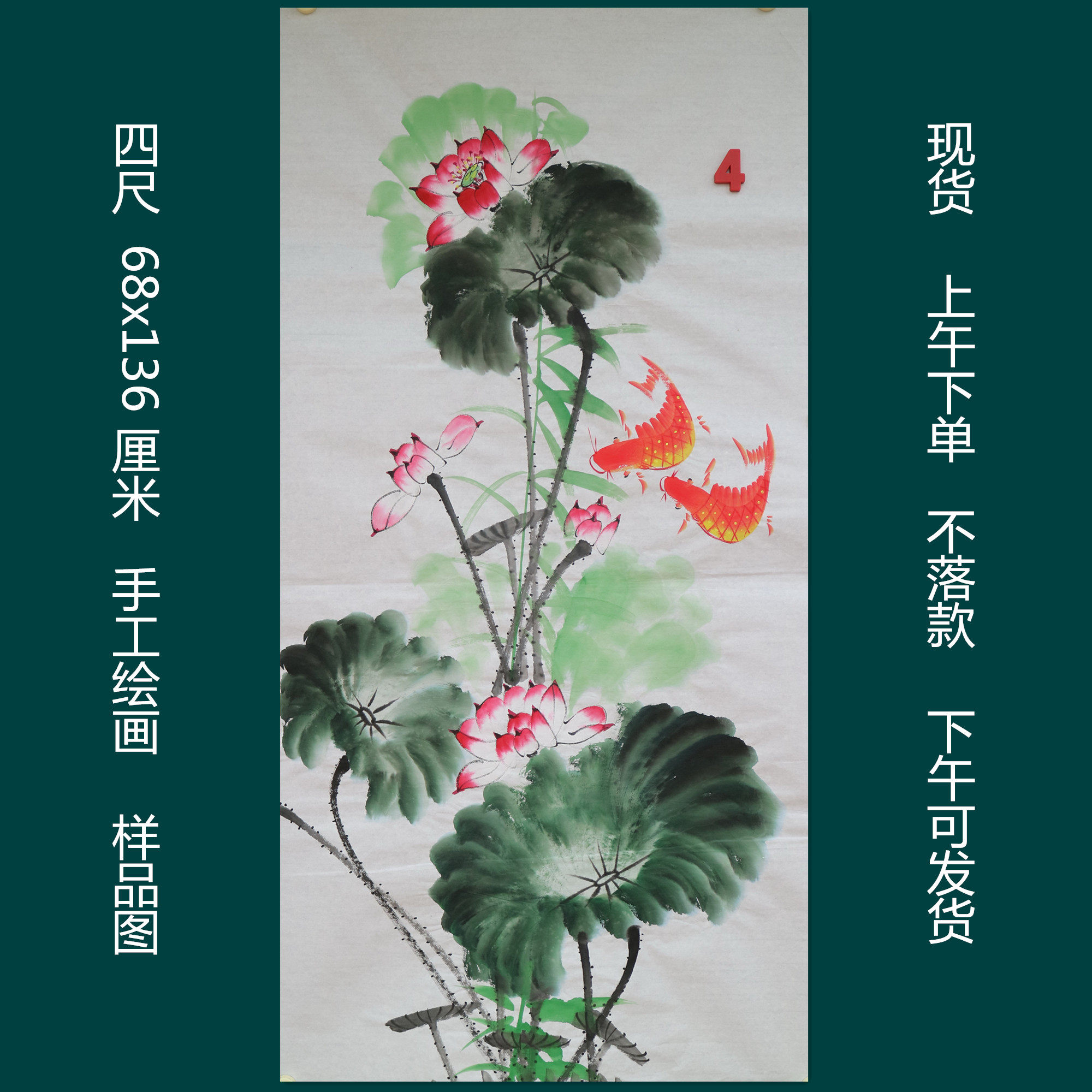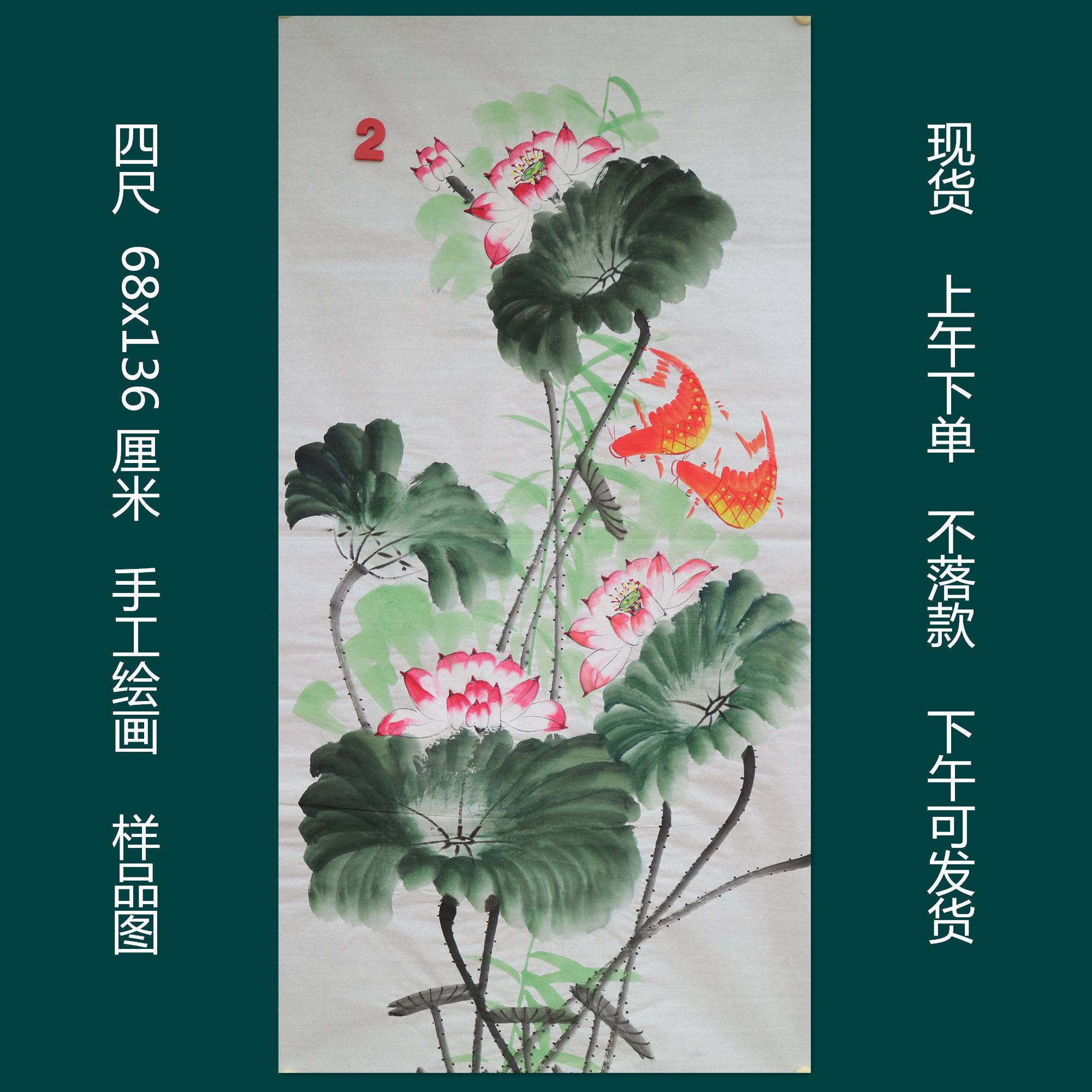 四尺特价手绘花鸟画国画荷花年年有余客厅字画装饰挂画无款E260-1