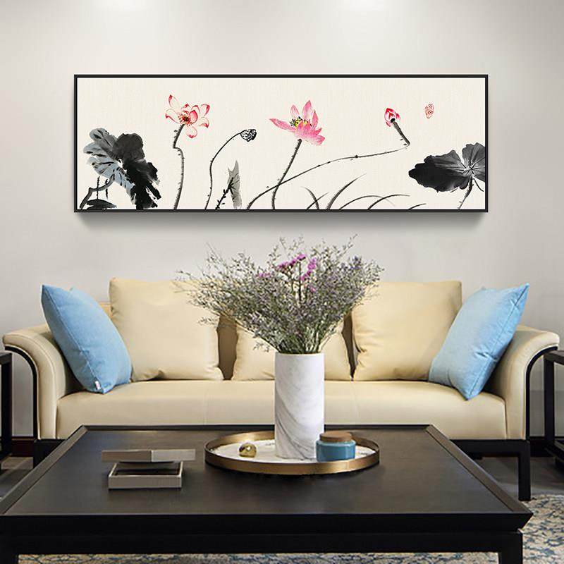 齐白石荷花装饰画新中式客厅沙发背景墙挂画卧室茶室壁画水墨国画