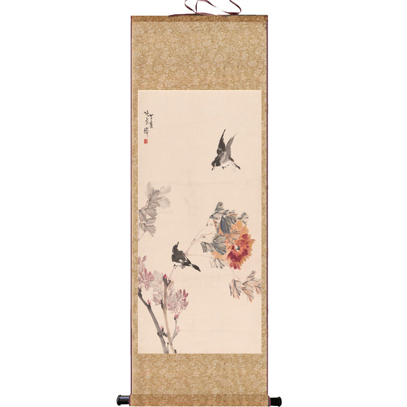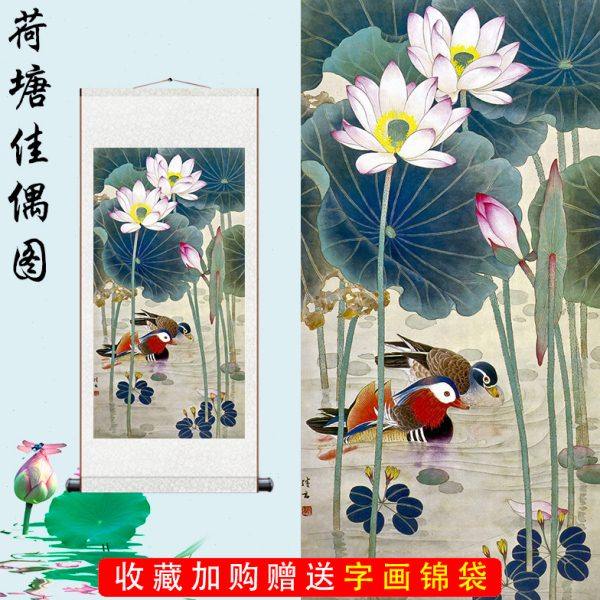 历代国画荷花鸳鸯牡丹国画办公室玄关装饰画沙发背景靠山卷轴挂画