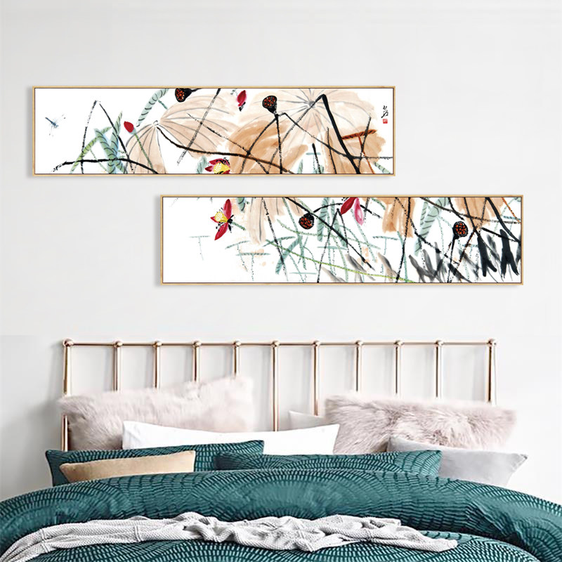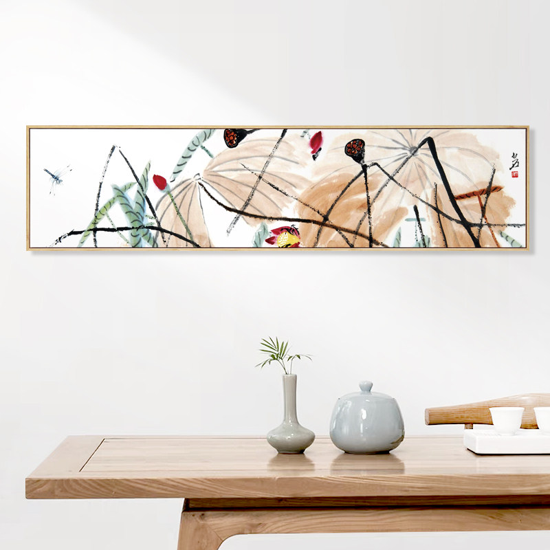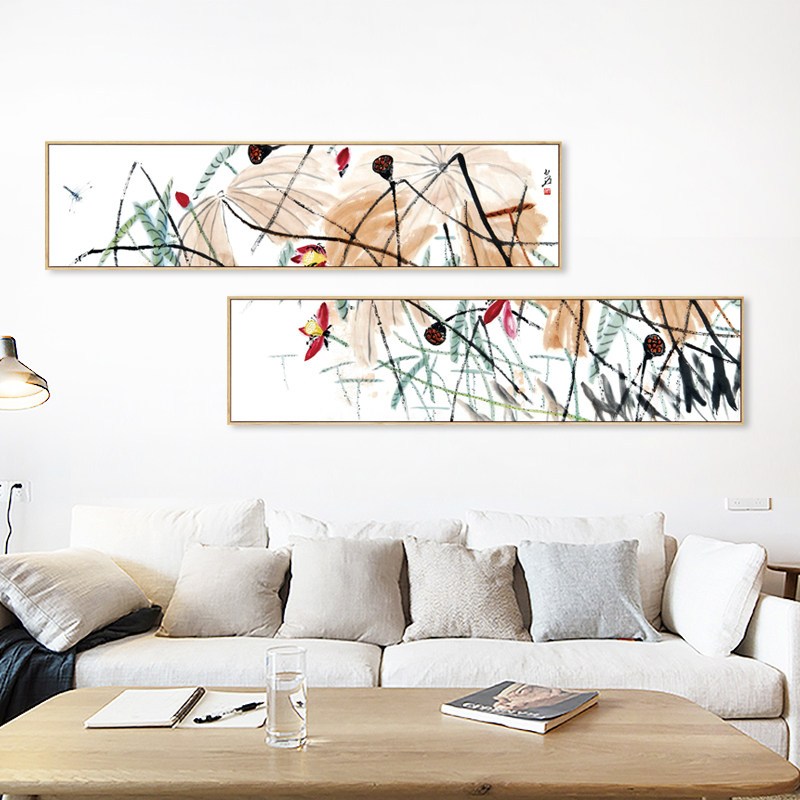 水墨宣言 齐白石国画荷花装饰画客厅背景墙横幅组合挂画茶室墙画