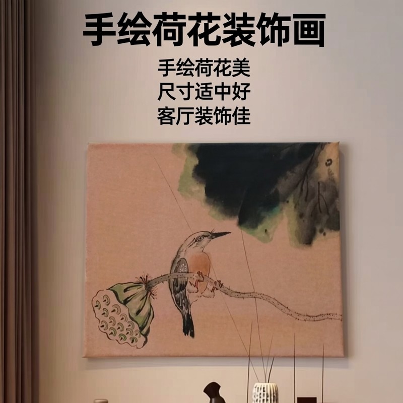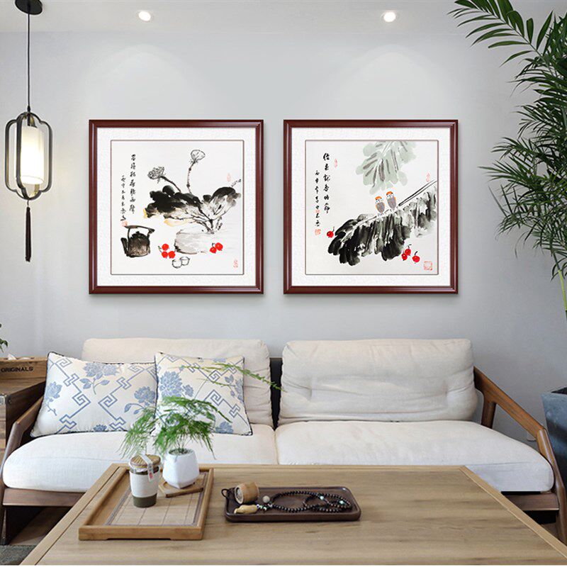 国画荷花墨卧室装饰画画温馨式客厅水壁鸳鸯花鸟画床头挂画花中鸟