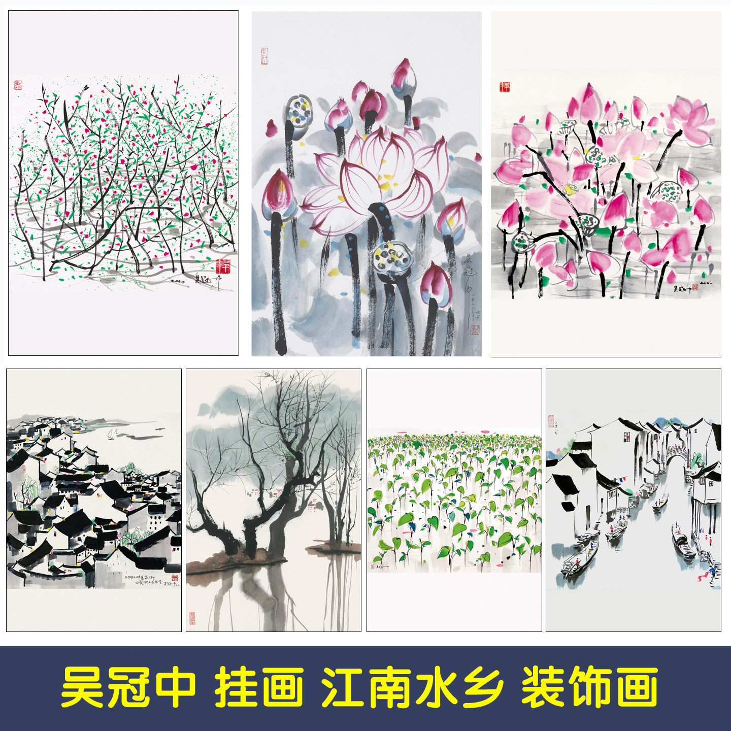 吴冠中装饰画江南水乡客厅玄关海报卧室书房水墨山水国画荷花挂画