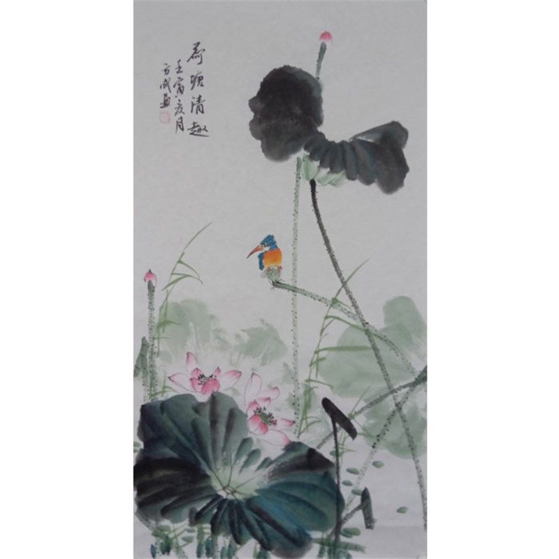 国画荷花卷轴装裱纯手绘真迹客厅装饰画写意花鸟画定制卧室水墨画