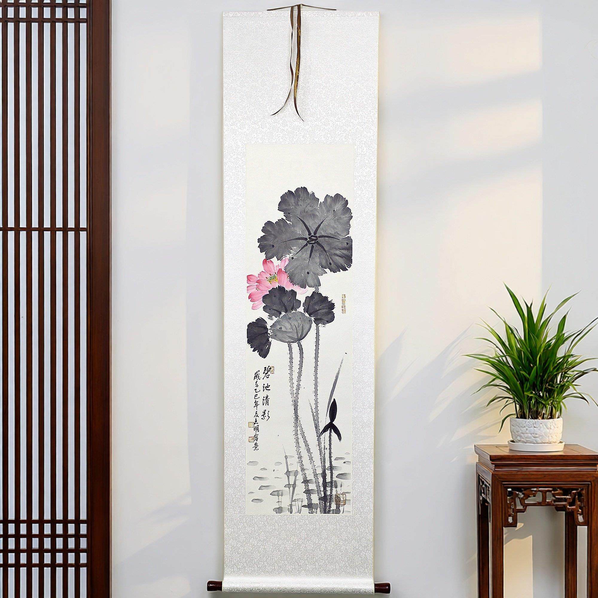 纯手绘国画荷花水墨画新中式客厅书房办公室茶室装饰书画卷轴挂画