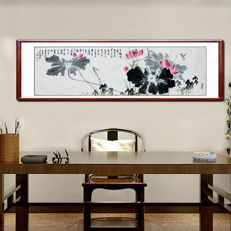 国画荷花字书画手绘真迹沙发背景墙客厅装饰画定制挂画写意水墨画