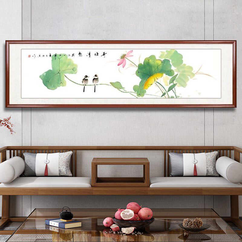 纯手绘国画荷花写意水墨画客厅横幅装饰画轻奢高级感2025新款挂画