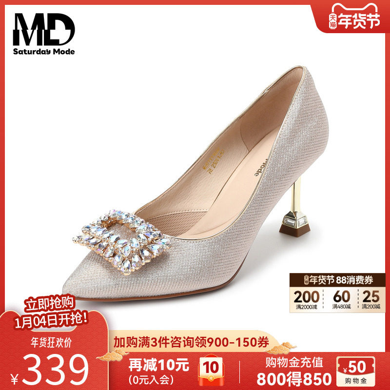 saturdaymode方扣水钻高跟鞋女2026春季爆款气质细高跟单鞋婚鞋子