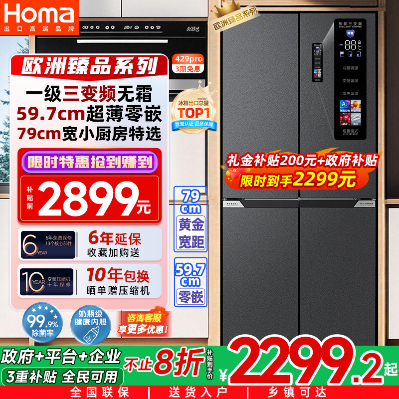 奥马冰箱家用嵌入式一级能效变频无霜双开门四开门国补电冰箱超薄