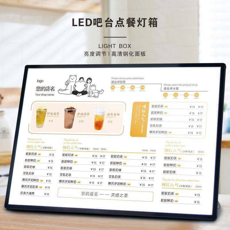 奶茶店菜单展示牌价目表设计制作桌面吧台发光LED广告灯箱点餐牌