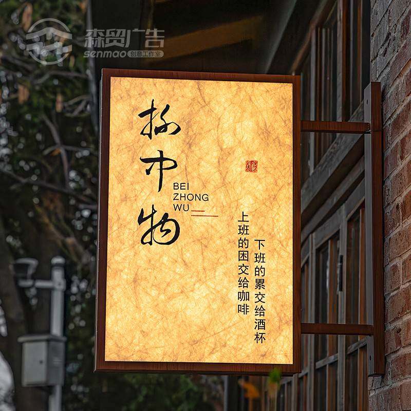 需定制杜邦纸纹理复古双面侧挂木纹LED广告灯箱民宿茶馆中式户外