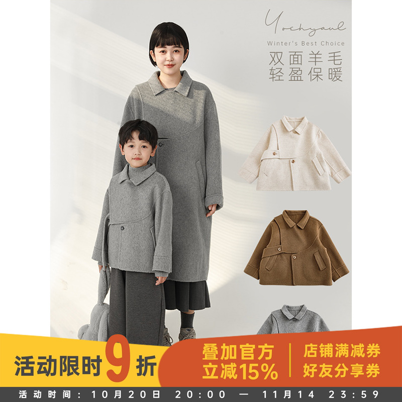 幼悠冬季男童手工双面呢宽松时尚帅气呢子毛呢外套儿童呢子大衣潮