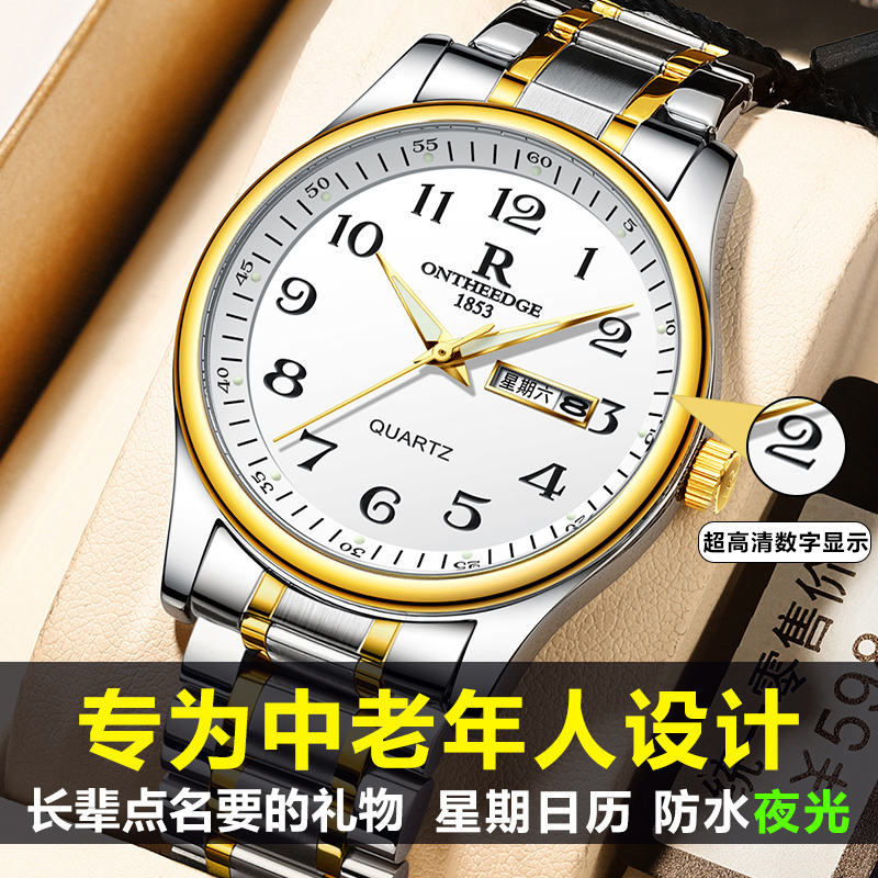 官方正品宾格大数字手表男士老年人防水夜光机械风石英表爸爸金表