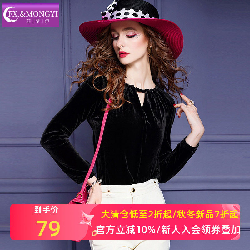 菲梦伊木耳边金丝绒打底衫T恤女冬季时髦洋气显瘦百搭设计感上衣