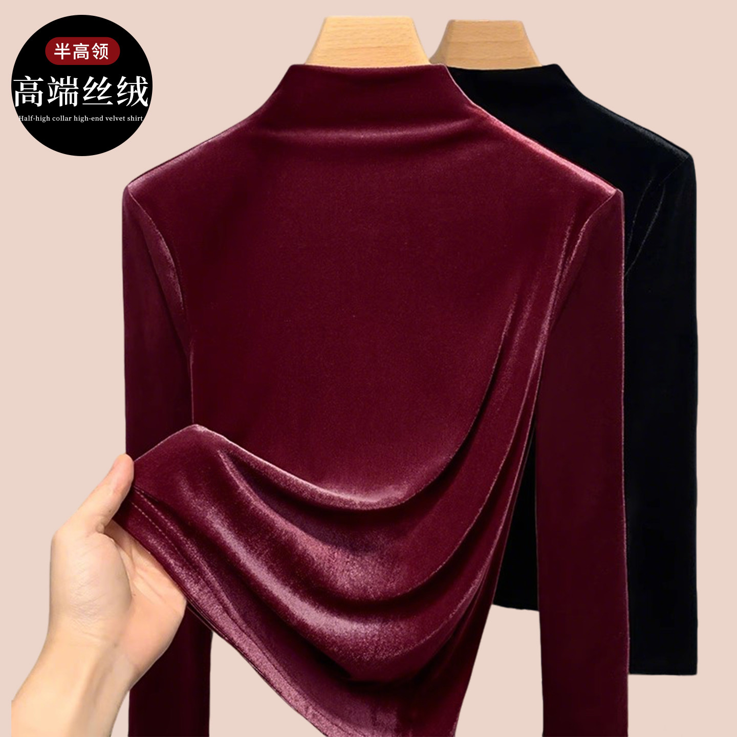金丝绒半高领打底衫女2025新款冬高级感内搭长袖T恤时尚洋气上衣