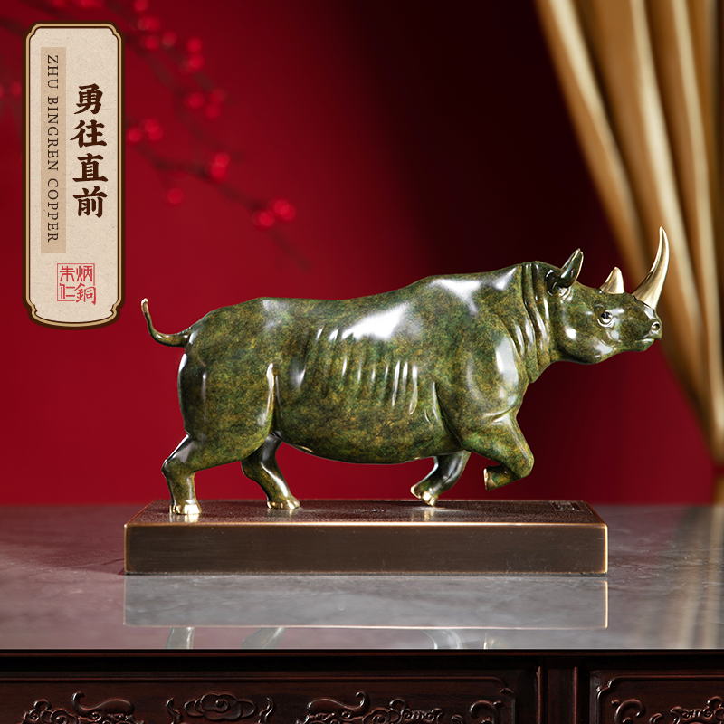 朱炳仁铜办公室内家居创意风水牛摆件商务送礼装饰品勇往直前犀牛