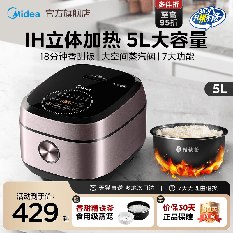 美的ih电饭煲5l升智能家用内胆多功能大容量通用不粘蒸煮饭锅旗舰