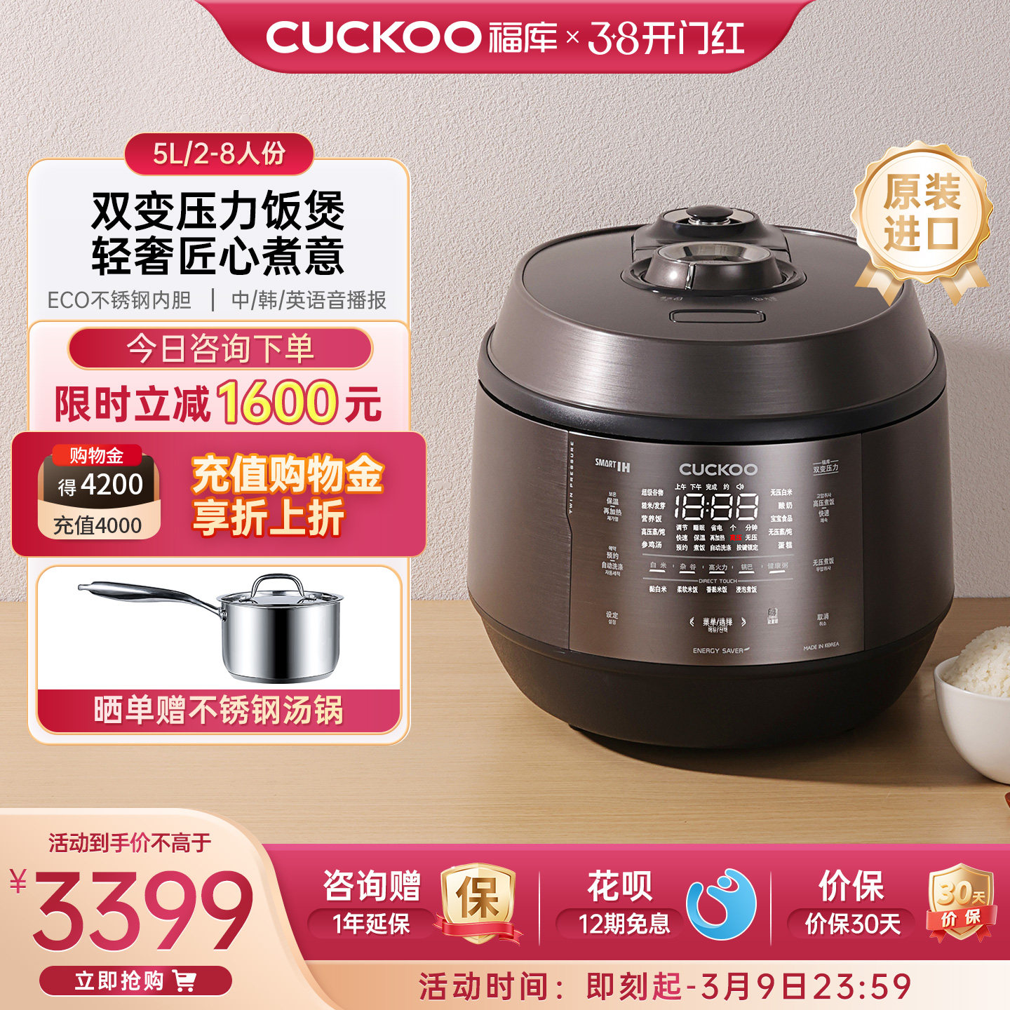 韩国直邮CUCKOO福库大容量双压模式智能多功能LHTR1010电饭煲5L
