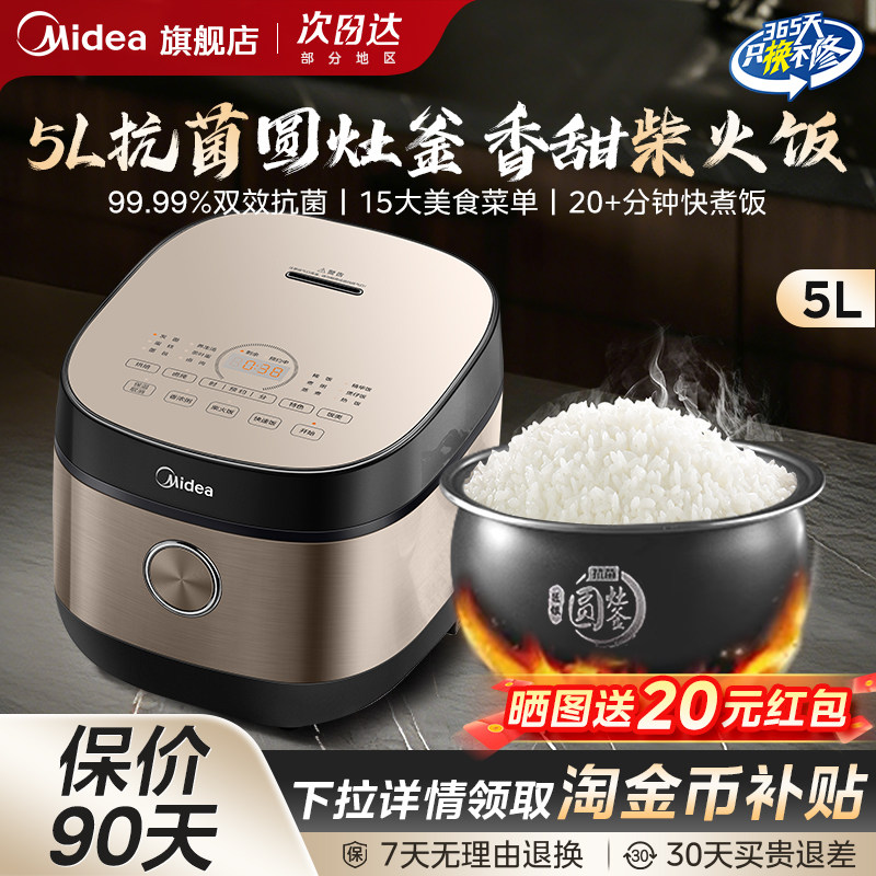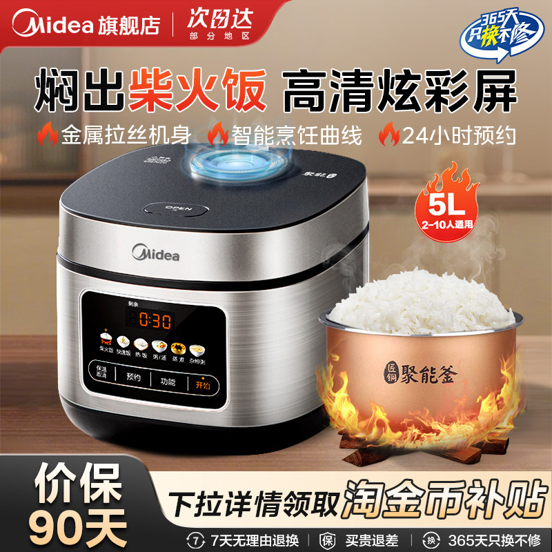 美的电饭煲5L升家用蒸煮焖柴火饭大容量6人饭锅内胆正品官方旗舰