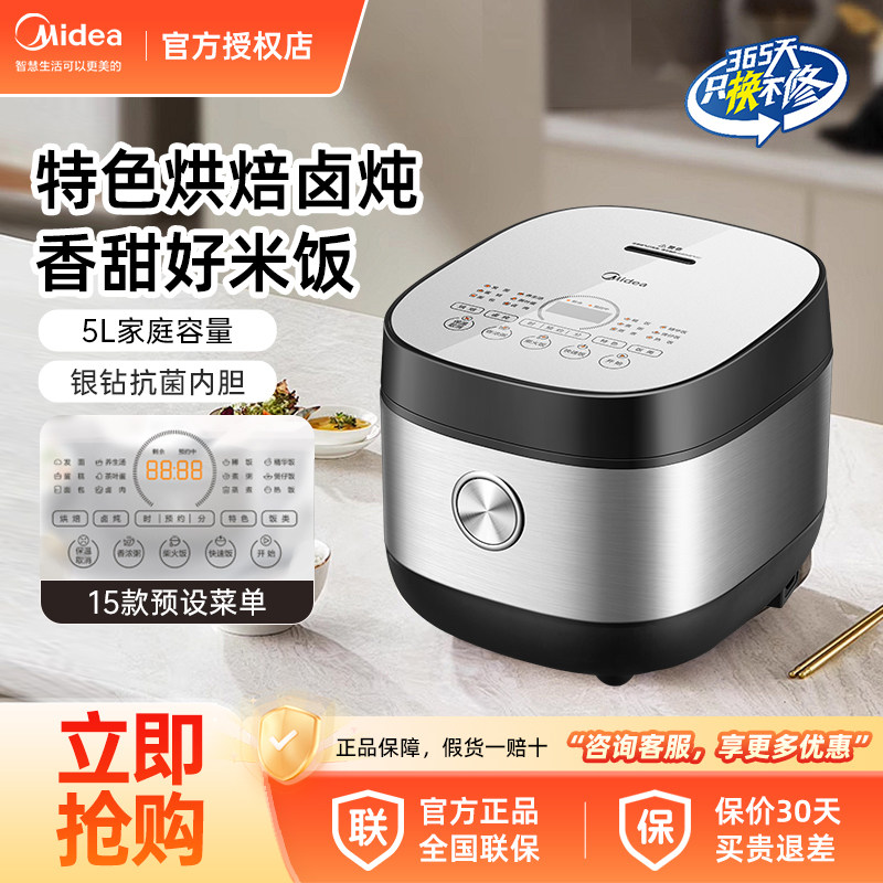 美的电饭煲5L大容量银钻抗菌内胆不粘锅24H预约15款菜单特色卤煮