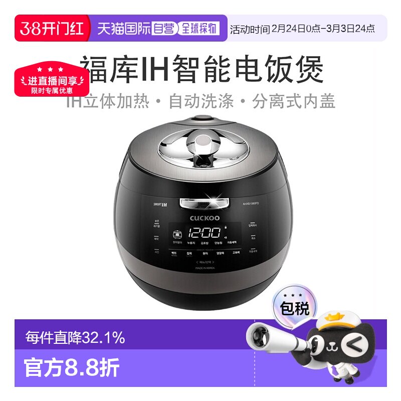 韩国直邮CUCKOO福库多功能电饭煲5L大容量电饭锅3-10人AHXB1060FD