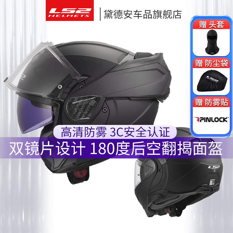 LS2摩托车头盔全盔揭面盔双镜片男女机车赛车冬季后空翻四季FF910