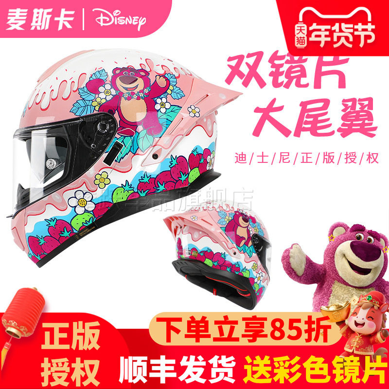 麦斯卡摩托车头盔全盔机车双镜片大尾翼男女漫威死侍草莓熊库洛米