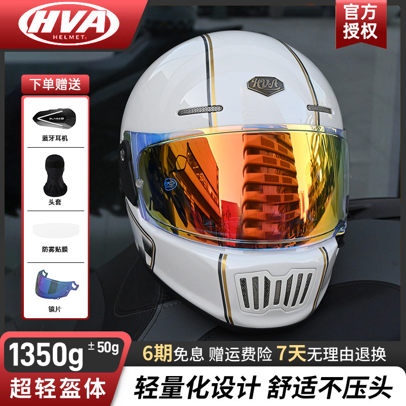 HVA复古摩托车头盔全盔男四季巡航机车哈雷蓝牙骑行头盔3c认证
