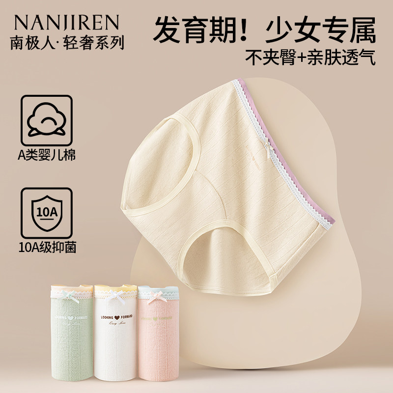 少女内裤女学生a类纯棉抗菌透气无痕不夹臀新款初中生女童三角裤